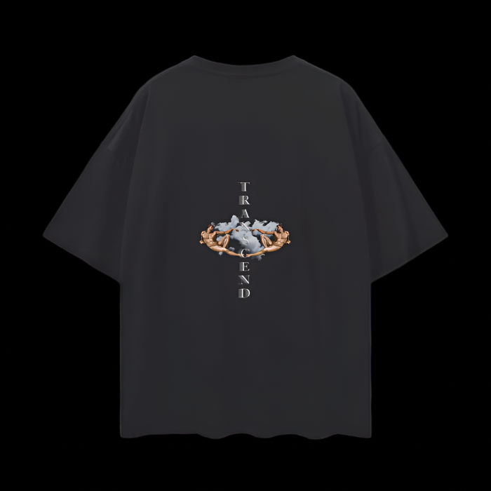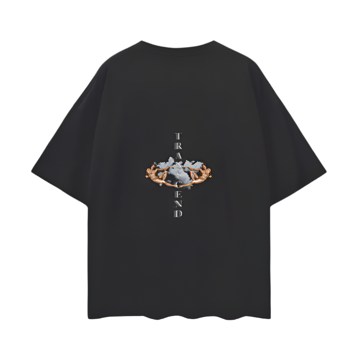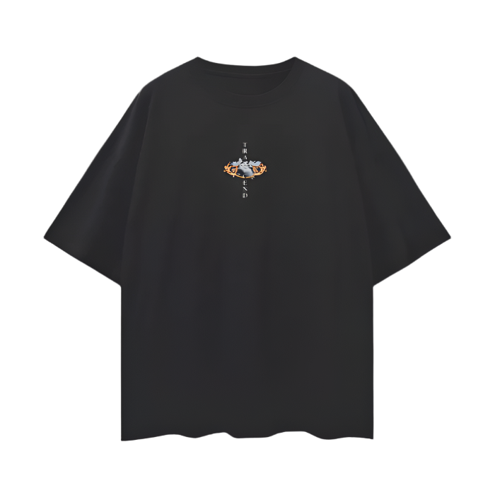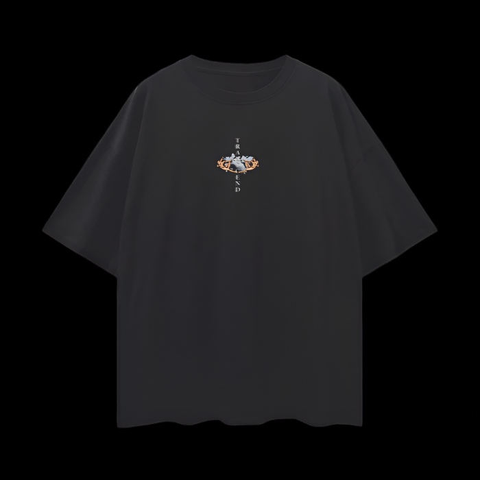 Black Oversized Tee with graphics on back and front. Perfect boxy fit for that cropped to waist fit. Sleeves hang low for good proportions. A streetwear style with a simplistic design.